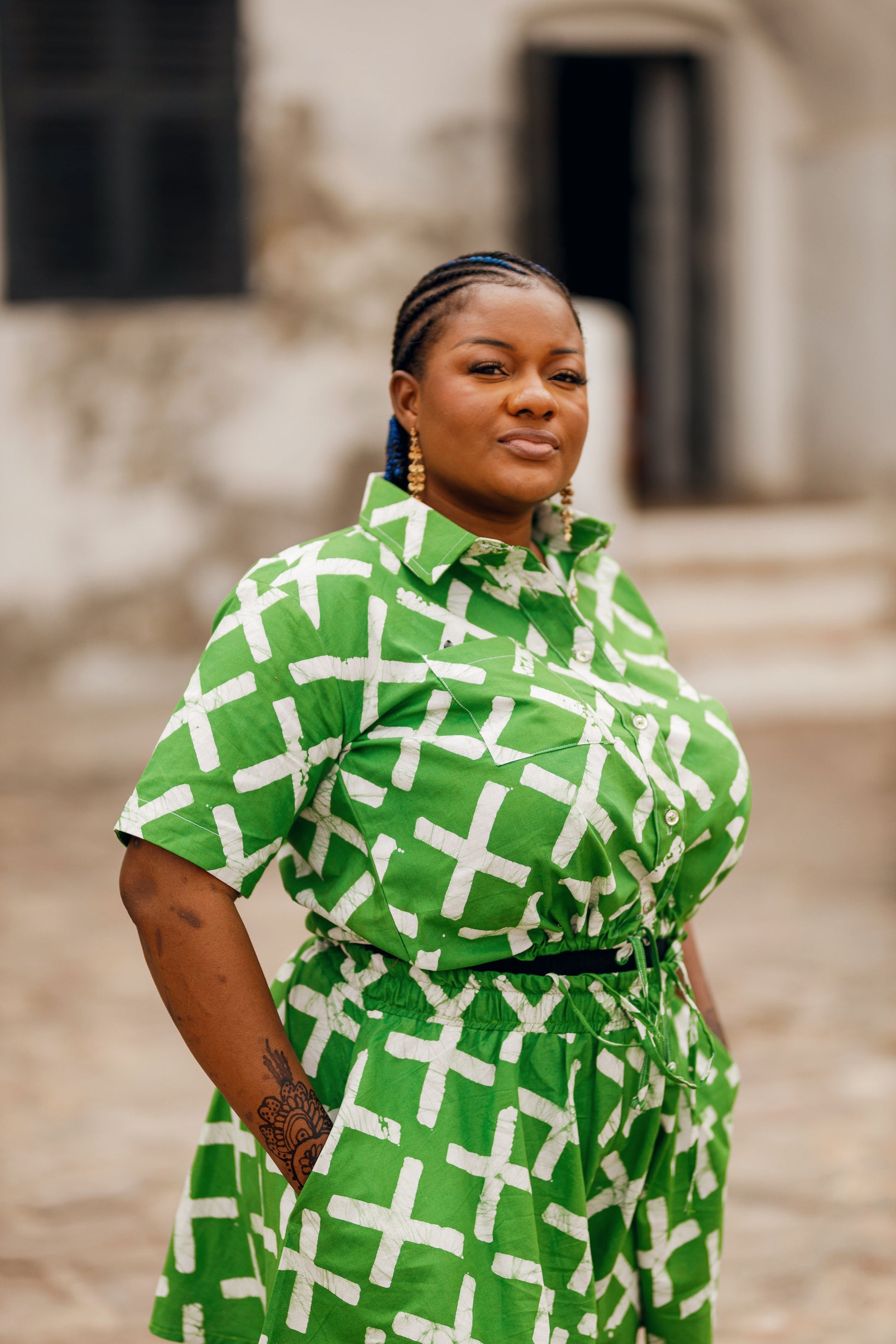 A playful twist on the classic button-up, this crop shirt features an adjustable drawstring hem for a customizable fit. Designed for comfort and versatility, it’s perfect to wear solo or layered, whether styled with high-waisted bottoms, jeans, or the matching circle shorts.